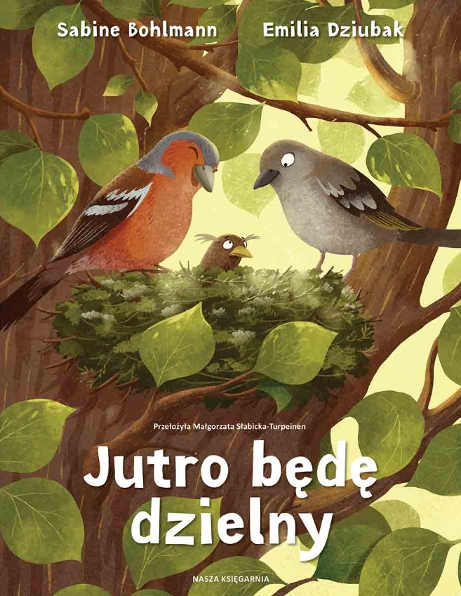 Pewnego dnia Ptasia Mama złożyła pięć jaj. Niedługo wykluło się z nich czworo piskląt, tylko piąte potrzebowało więcej czasu. Podobnie było, gdy maluchy uczyły się latać. Inne ptaki naśmiewały się z piątego pisklaka i namawiały Ptasią Mamę, by wypchnęła go z gniazda. Ale Ptasia Mama była pewna, że właściwy moment po prostu jeszcze nie nadszedł. Czy mały ptaszek kiedyś zbierze się na odwagę i rozwinie skrzydła? Jutro będę dzielny to opowieść o tym, że trzeba wierzyć w dzieci – nawet wtedy, gdy potrzebują trochę więcej czasu.